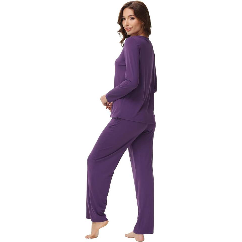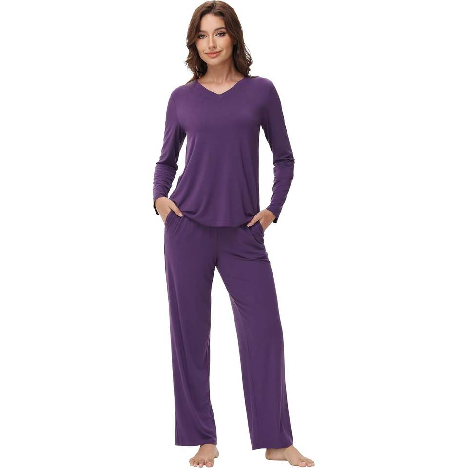 Ensemble de pyjama pour femme personnalisé, haut à manches longues et pantalon en viscose de bambou, doux, tailles S à XXL