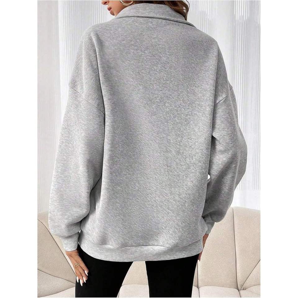 Sweat-shirt personnalisé pour femme grande taille, col zippé, manches longues, épaules tombantes, col à revers, pull décontracté, vêtements d'automne