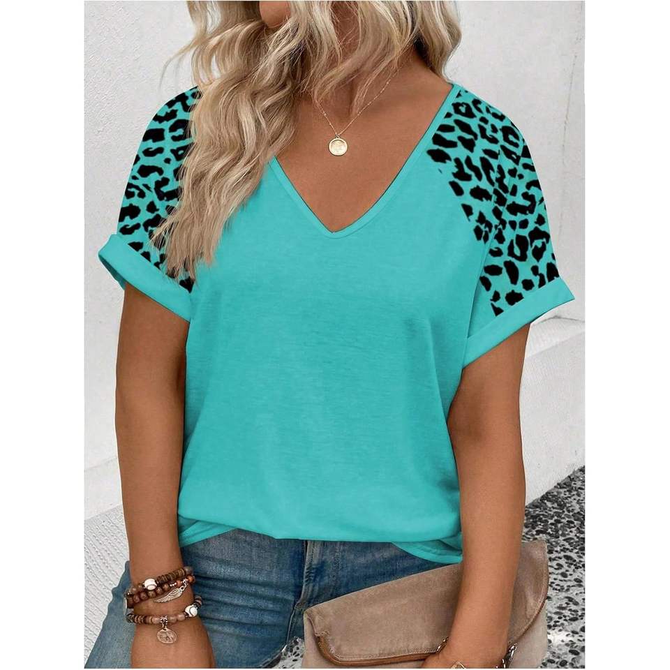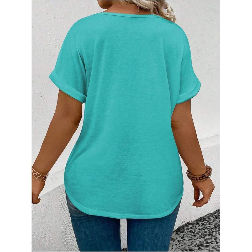 T-shirt personnalisé pour femme grande taille à manches courtes, col en V, en polyester tricoté, haut d'été à manches régulières