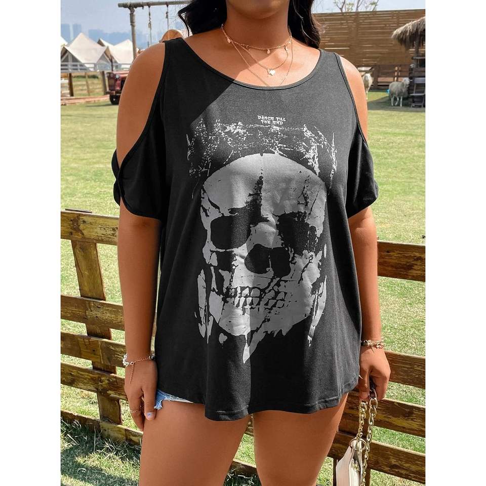 T-shirt en jersey respirant à manches courtes et épaules dénudées SOLY HUX personnalisé pour femme, grande taille, avec logo et imprimé tête de mort, idéal pour l'été et les tenues décontractées