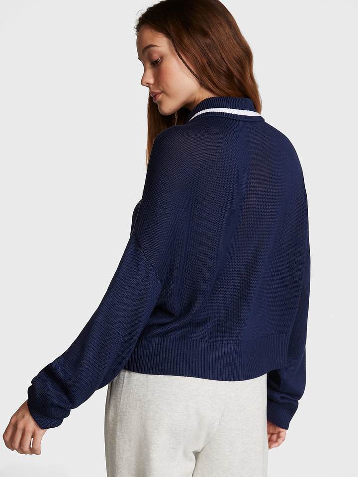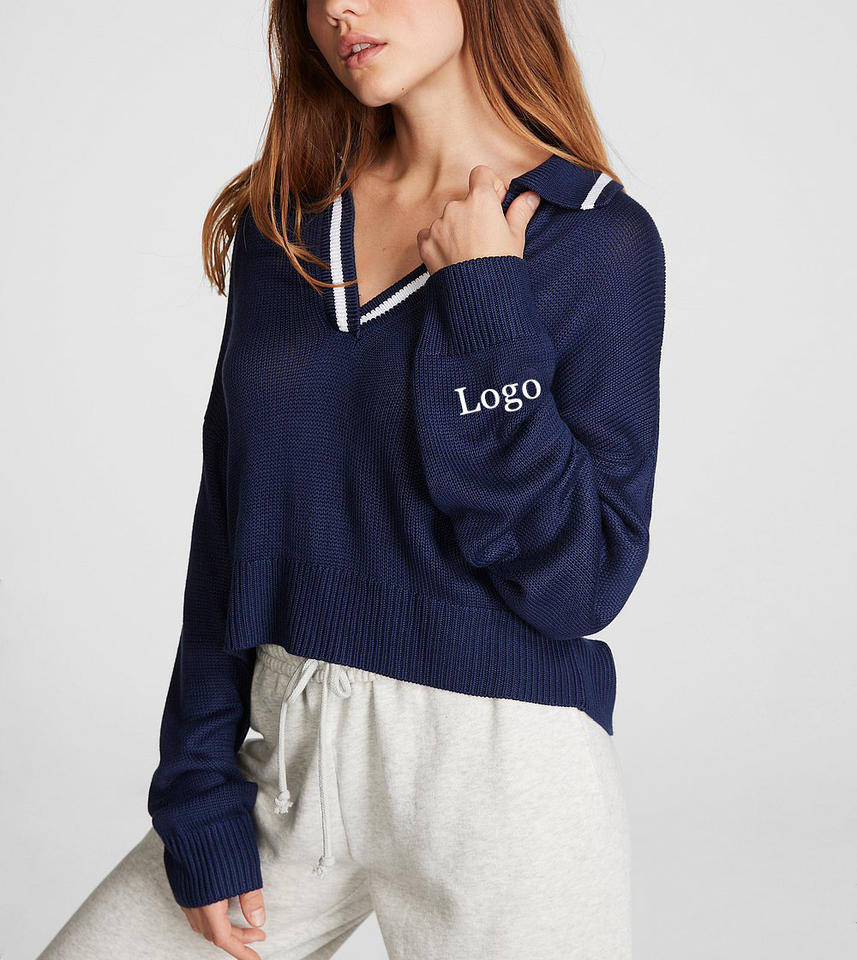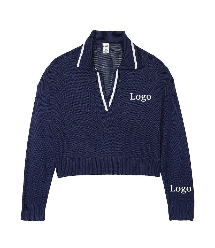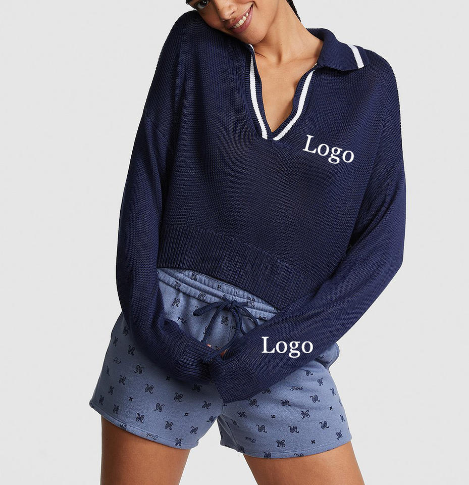 Sweat-shirt à imprimé Preppy Collegiate pour femmes personnalisé pull à la mode en tricot pour col polo à manches longues vêtements d'hiver courts sur le devant