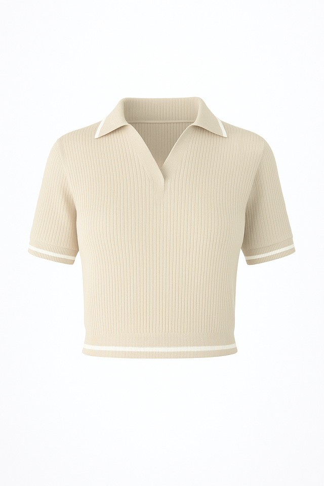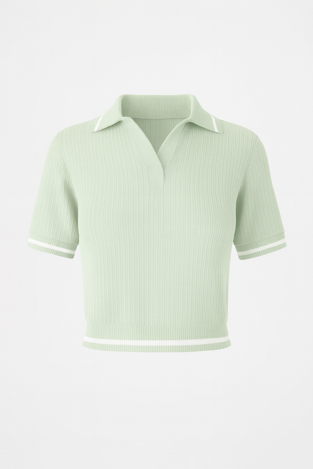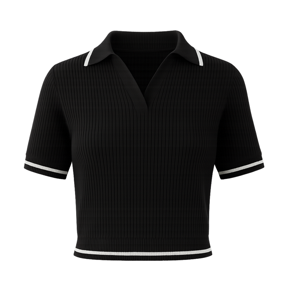 Polo côtelé personnalisé pour femme à manches courtes et bordure contrastante, tissu extensible et confortable, commandes en gros