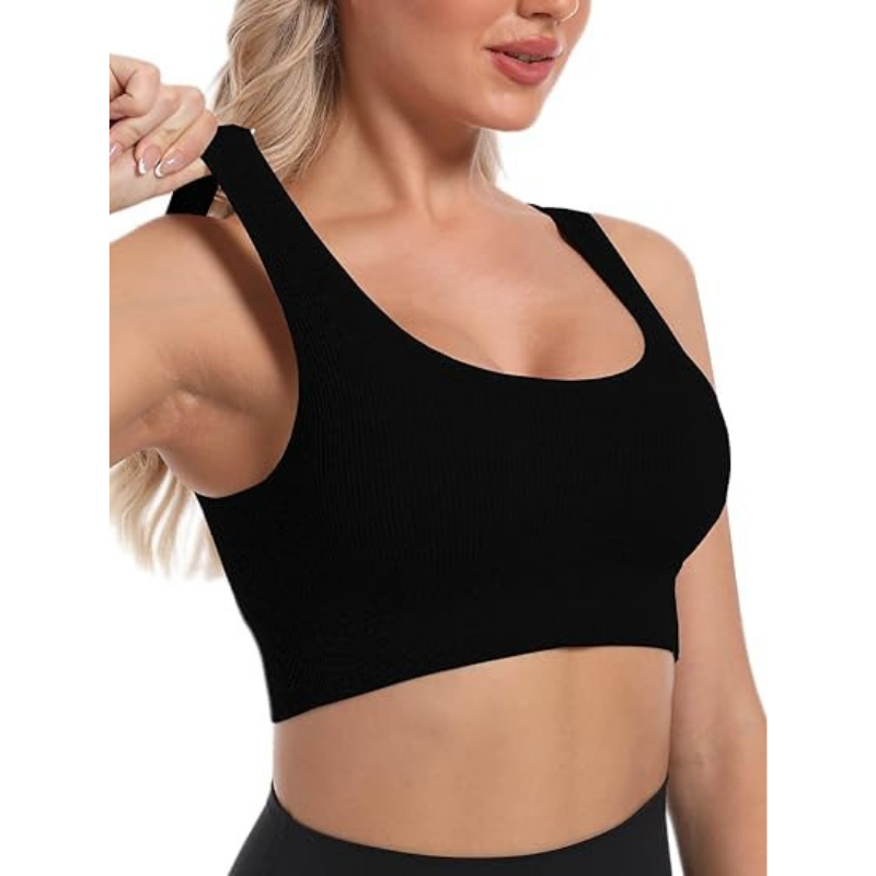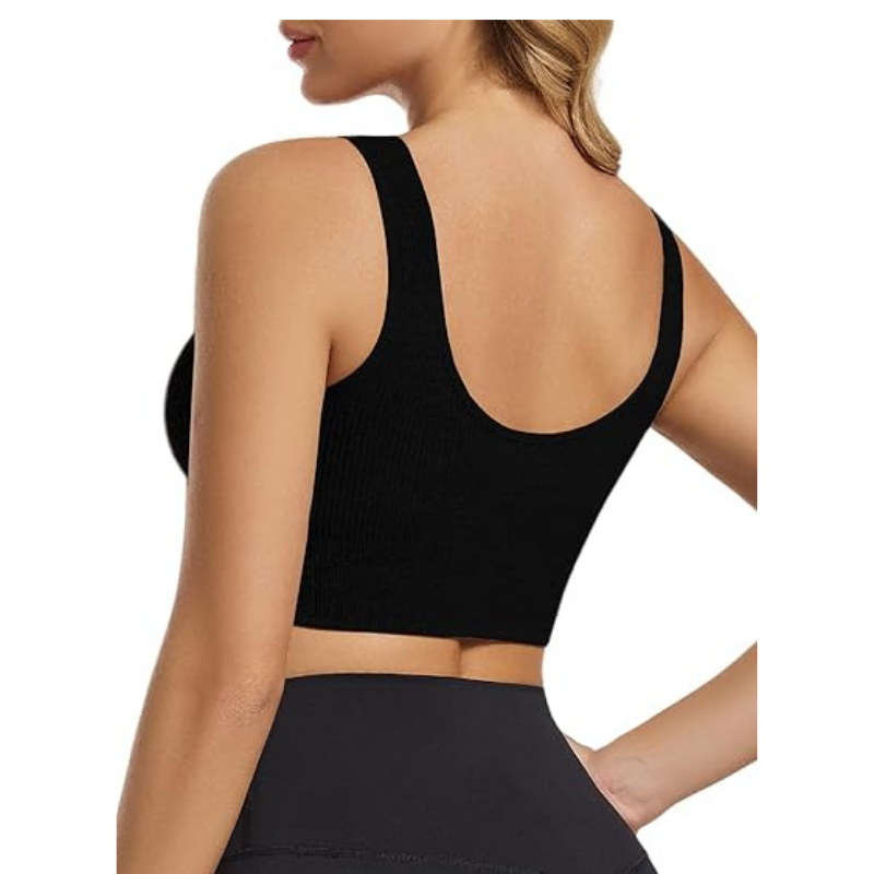 Soutien-gorge de sport côtelé sans couture pour femmes | Haut de yoga extensible et doux avec coussinets amovibles pour la gym, le fitness et le confort de tous les jours