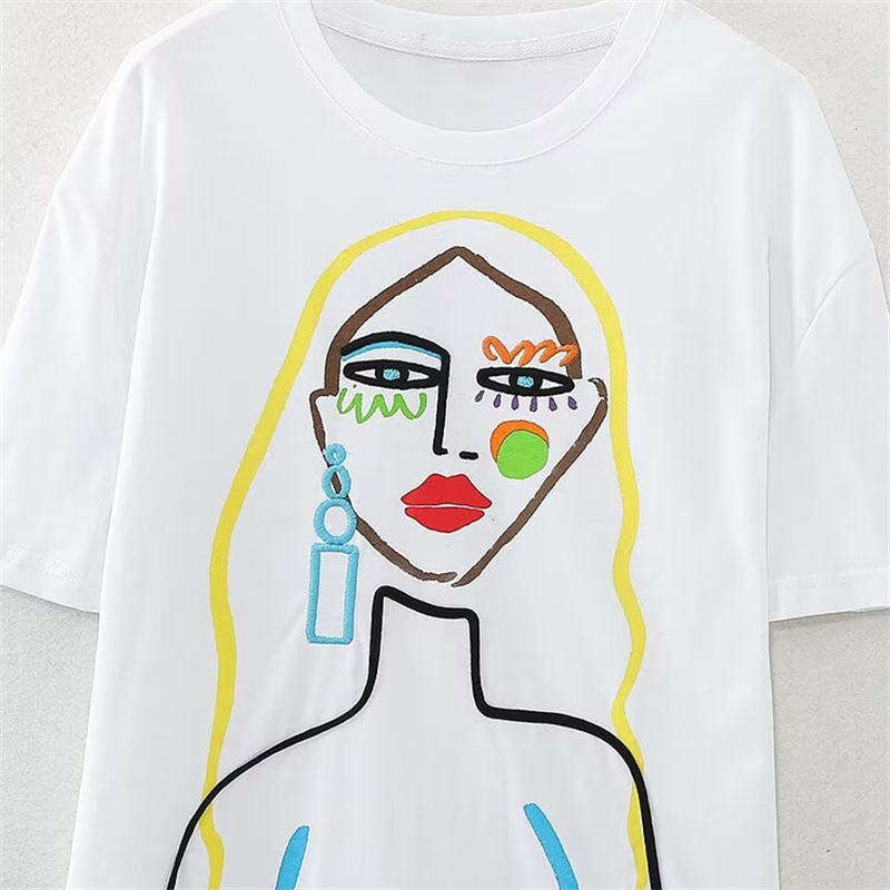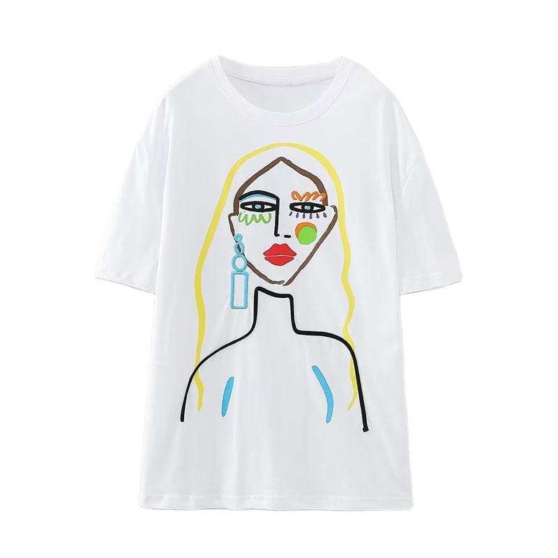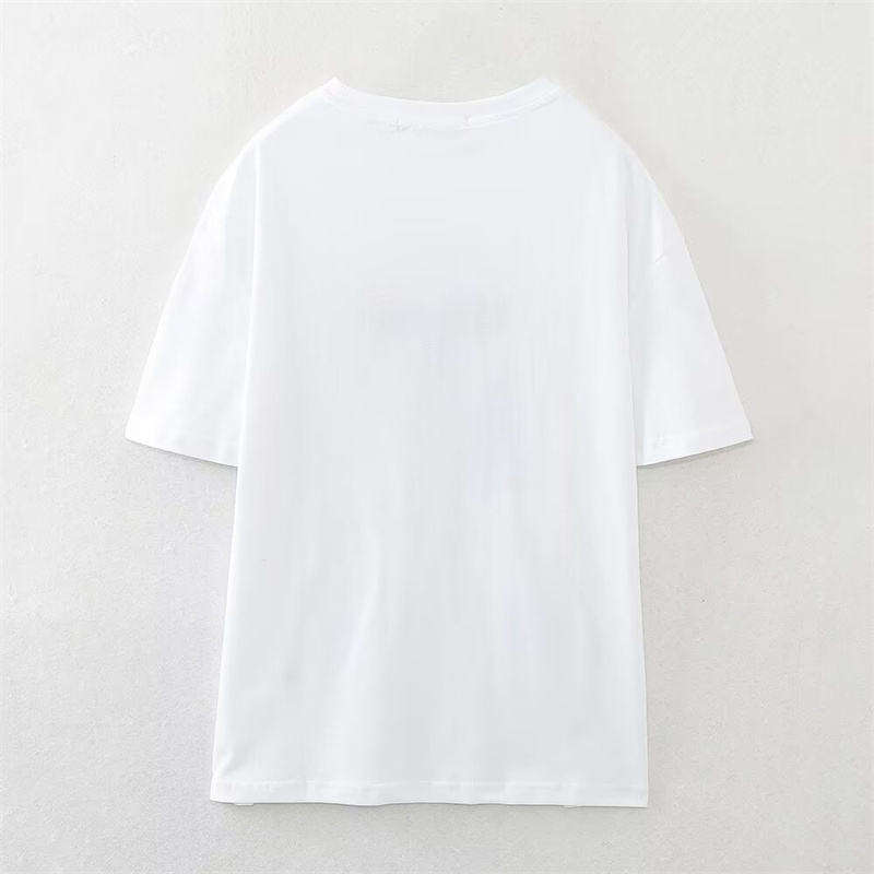 T-shirts décontractés en coton tricoté à col rond pour femmes, imprimés printemps – Tissu doux et confortable pour marques de mode et commandes en gros