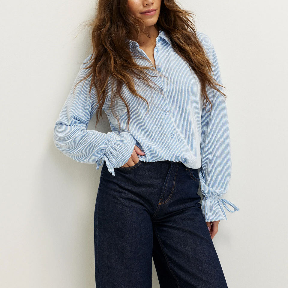 Chemise à manches longues pour femme, à rayures, structurée, avec poignets et ourlet ajustables, fabrication OEM ODM en gros par une usine de vêtements chinoise