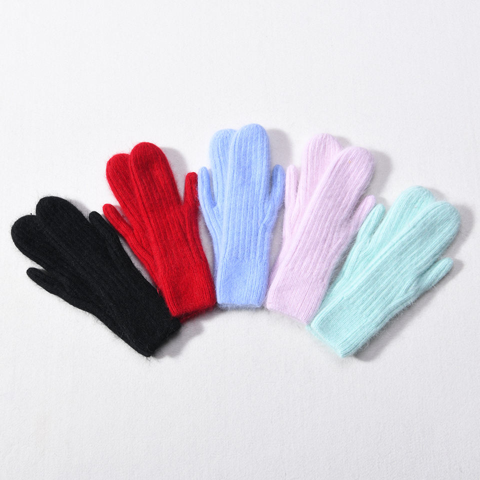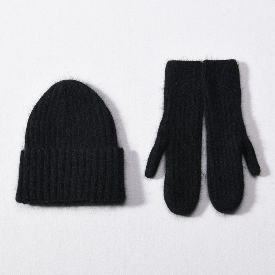 Ensemble d'extérieur d'hiver pour femmes personnalisé mitaines souples à doigts entiers et bonnet en laine tricotée unie 2 pièces vente de gros