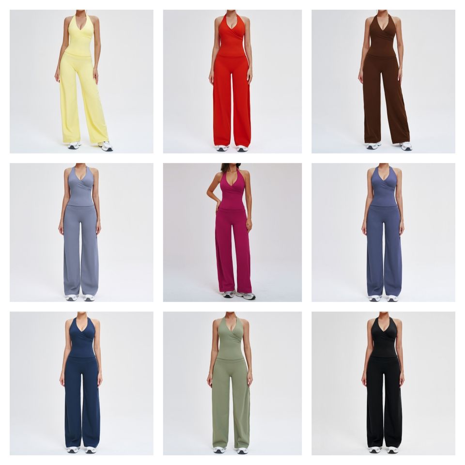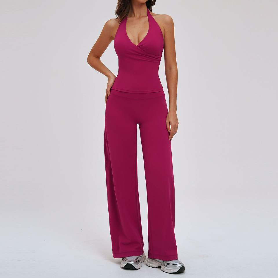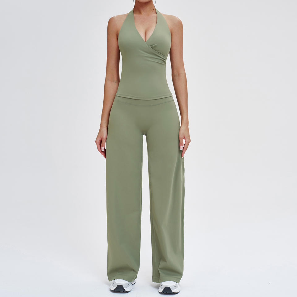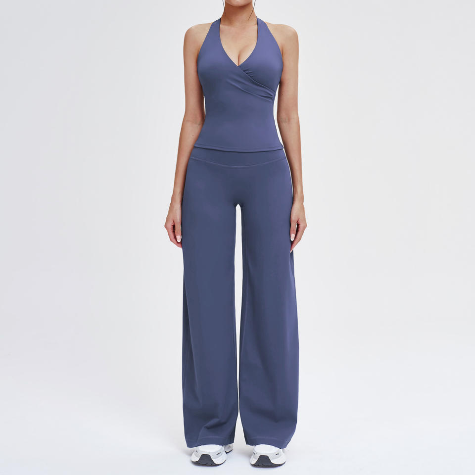 Ensemble de yoga personnalisé pour femme – Débardeur sans manches, dos nu, leggings évasés taille haute, respirant et séchage rapide – Tenue de sport et yoga