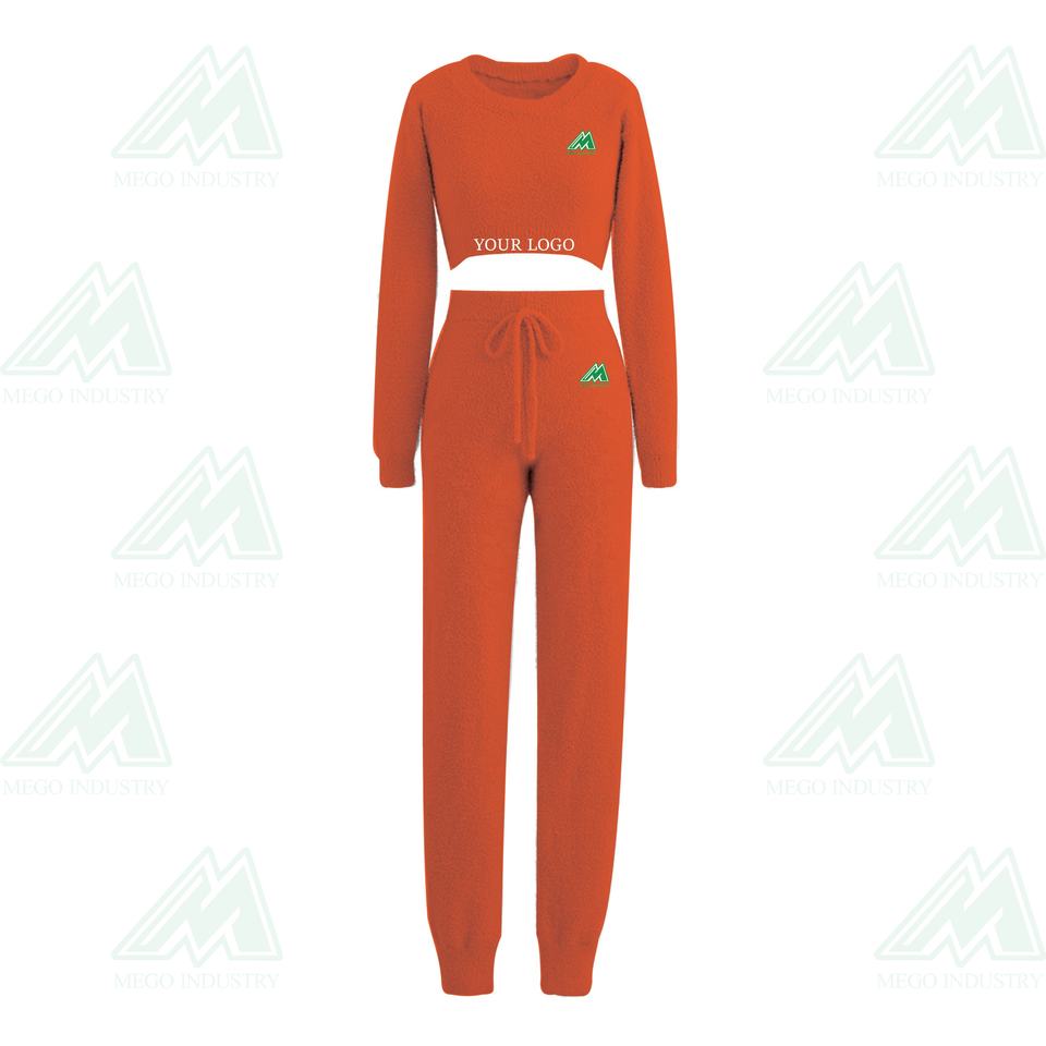 Ensemble de survêtement décontracté d'hiver pour femme, en molleton doux et tricoté, brodé, à manches longues, avec pantalon et pull