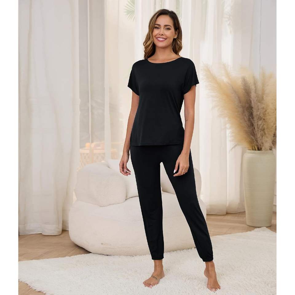 Ensemble de pyjama pour femmes personnalisé, haut à manches courtes, pantalon de jogging, vêtements de nuit en 2 pièces, viscose de bambou, tailles S à XXL