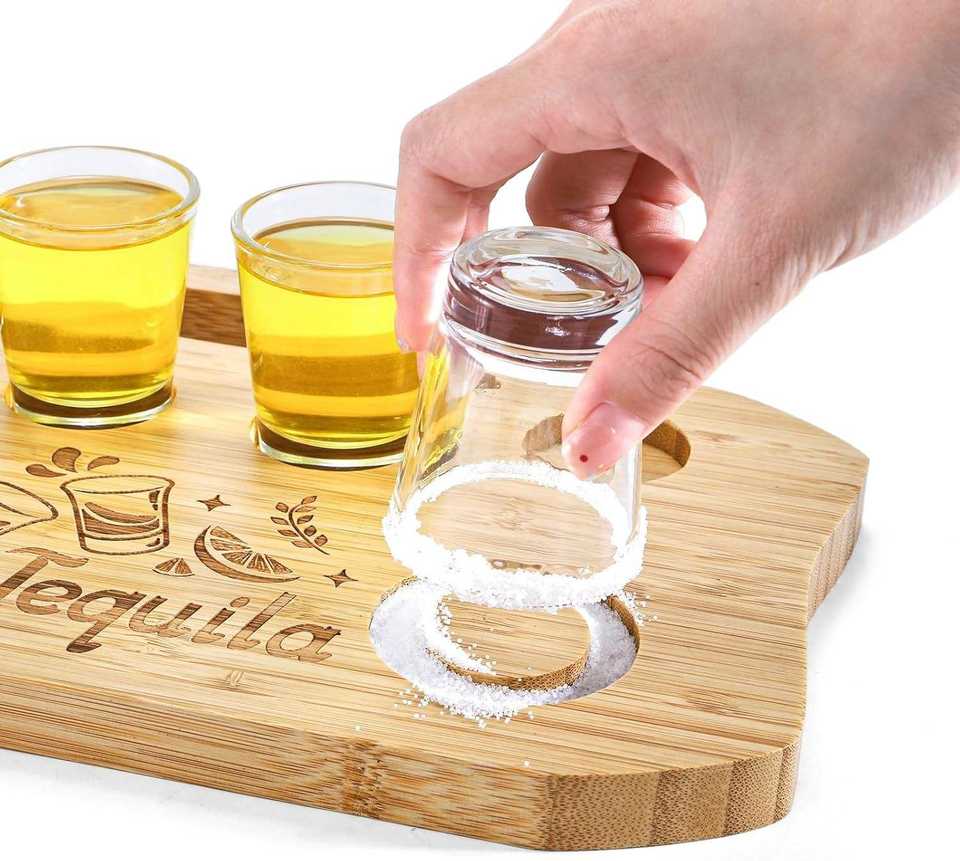 Planches de vol de bière en bois personnalisées avec verres Plateaux de service en bambou pour verres à liqueur ou tequila