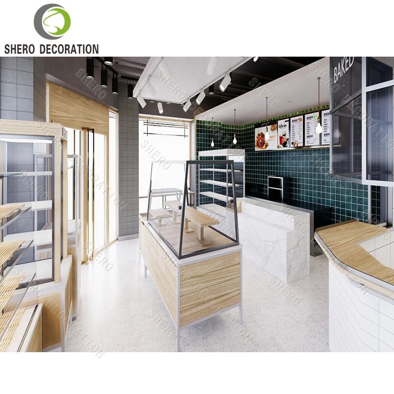 Comptoir de présentation en bois personnalisé pour boulangerie Vitrine de présentation pour boulangerie Design de comptoir pour café en vente