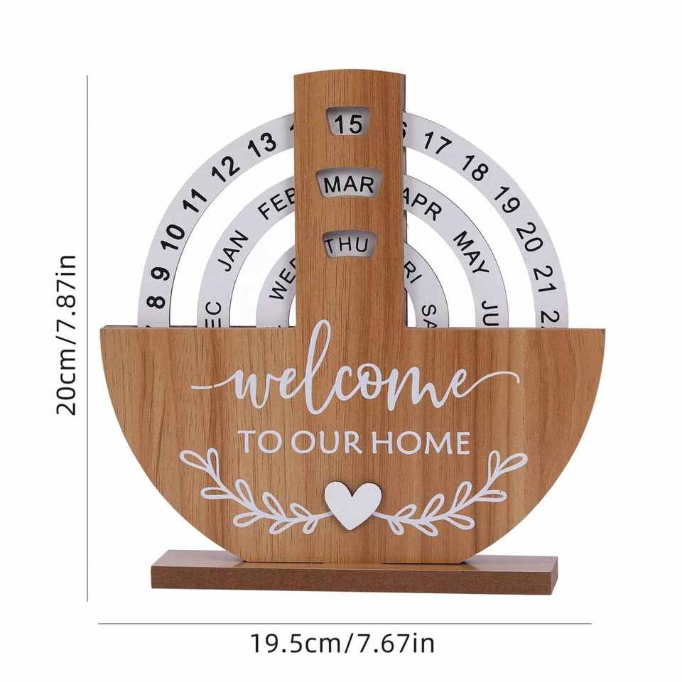Calendrier de bureau perpétuel en bois personnalisé, design rotatif manuel pour affichage des dates, des semaines et des mois à la maison ou au bureau