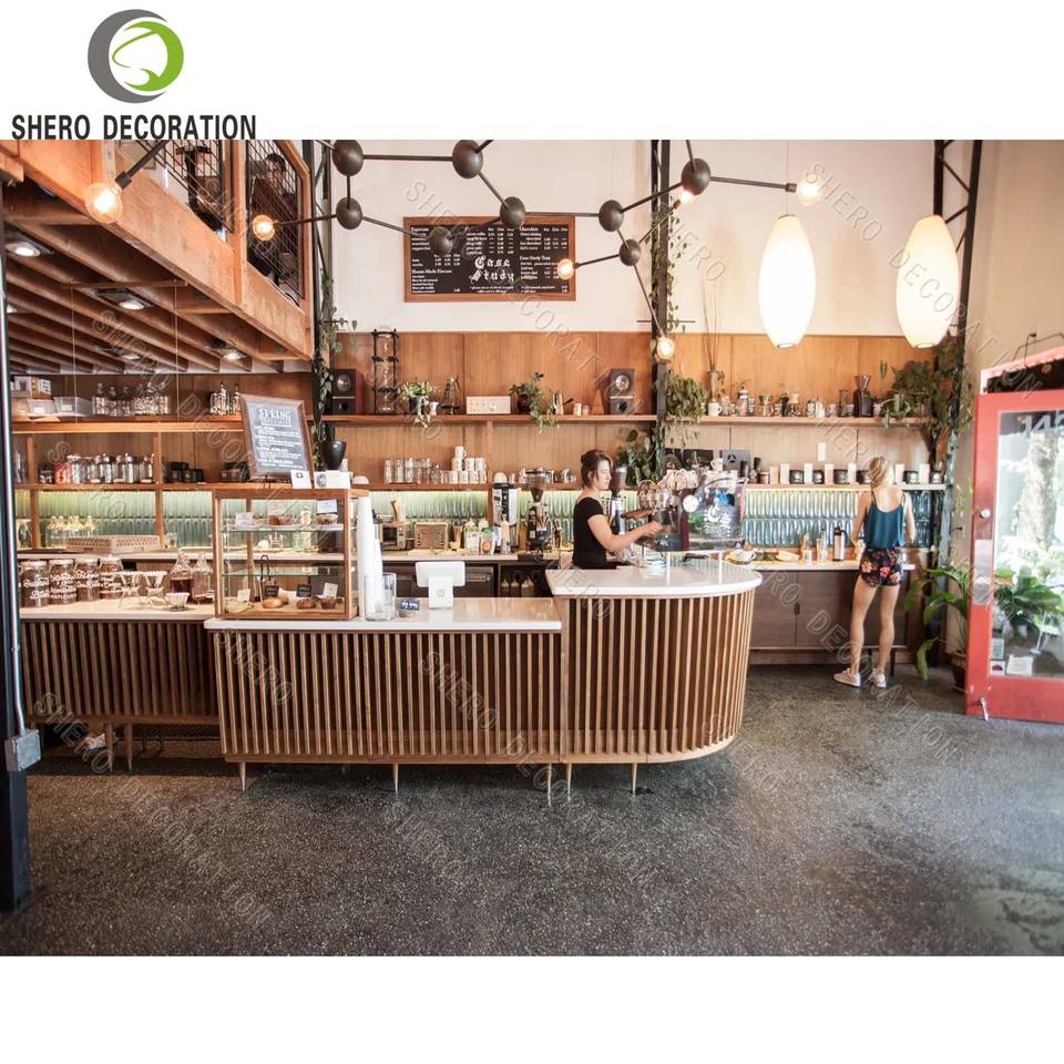 Meubles de café en bois sur mesure, vitrine de boulangerie en verre, comptoir de bar en marbre pour café, à vendre