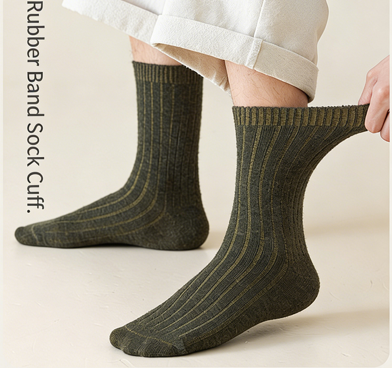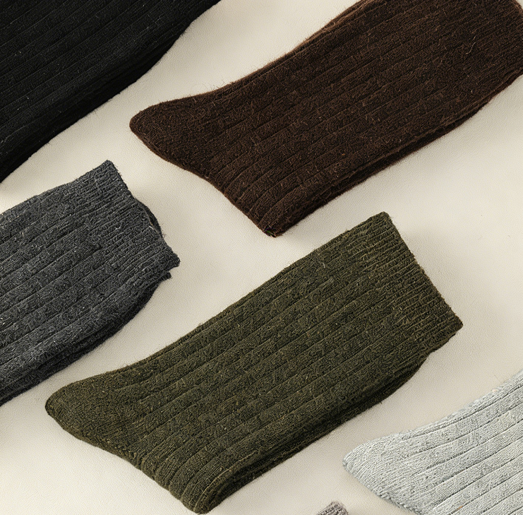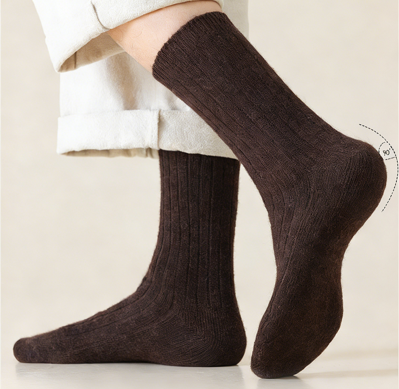 Chaussettes mi-mollet en laine mélangée personnalisées, motif côtelé épais pour hommes et femmes, décontractées, absorbant la transpiration, hiver