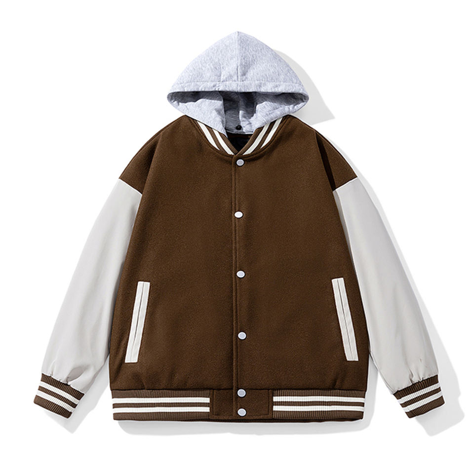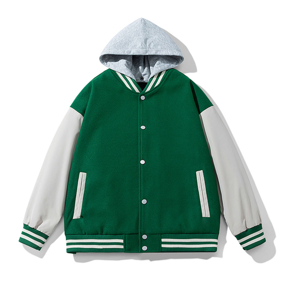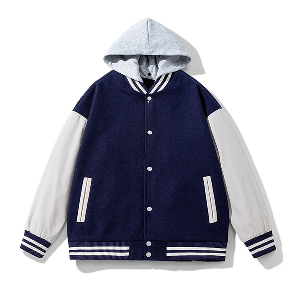 Personnalisé Laine Corps Manches en cuir Avec Capuche Coton Polaire Saison D'hiver Baseball Veste/Collage Porter Varsity Veste Hommes