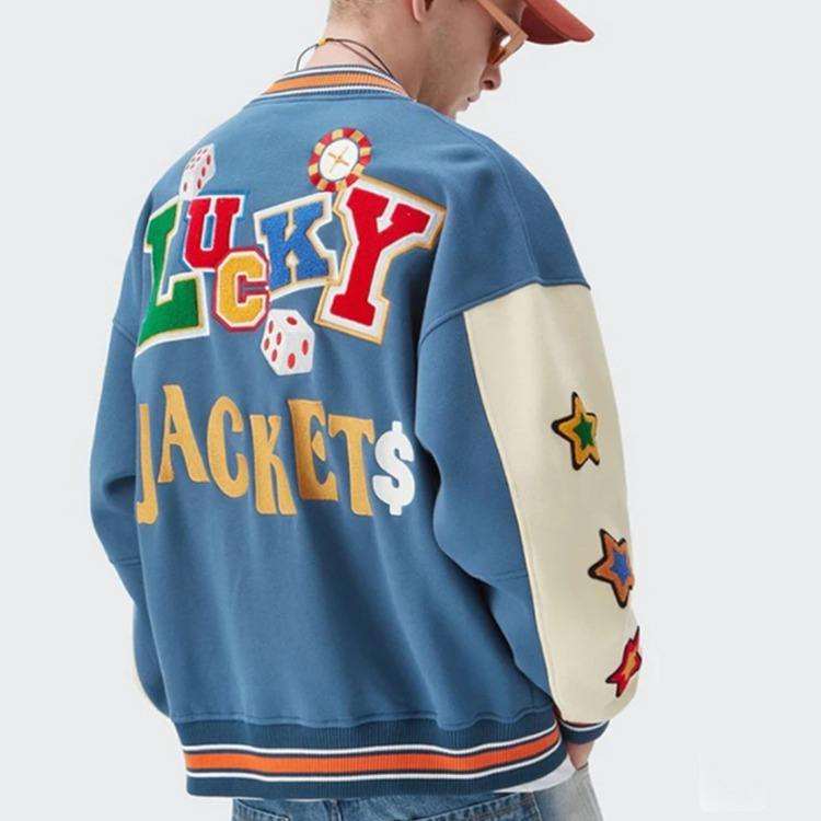Blousons universitaires pour hommes en laine personnalisée avec manches en polyester, col montant, design mode extérieur, style hip-hop, blousons Letterman
