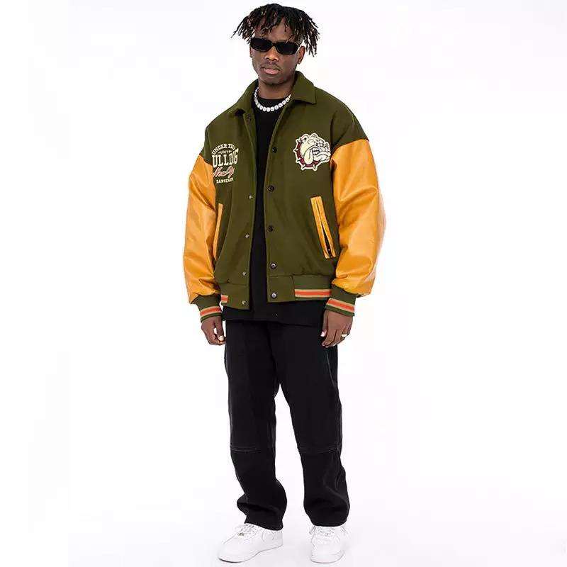 Veste universitaire en cuir de laine personnalisée pour hommes col à capuche en tissu de laine brodé chauffant pour les achats en ligne nouveau design
