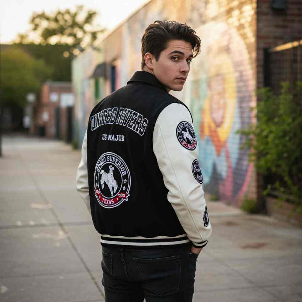 Veste de baseball universitaire en laine personnalisée pour hommes, style hiver universitaire avec patchs en chenille et logo brodé sur le devant