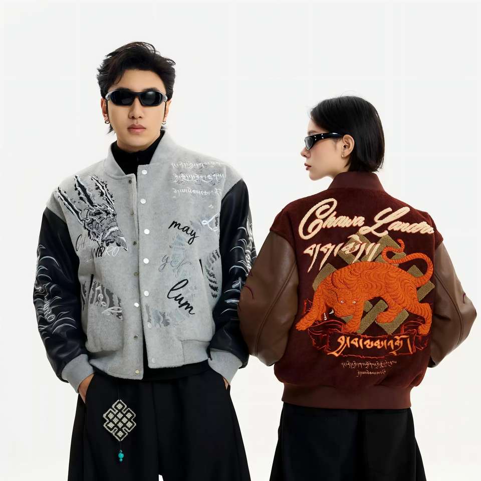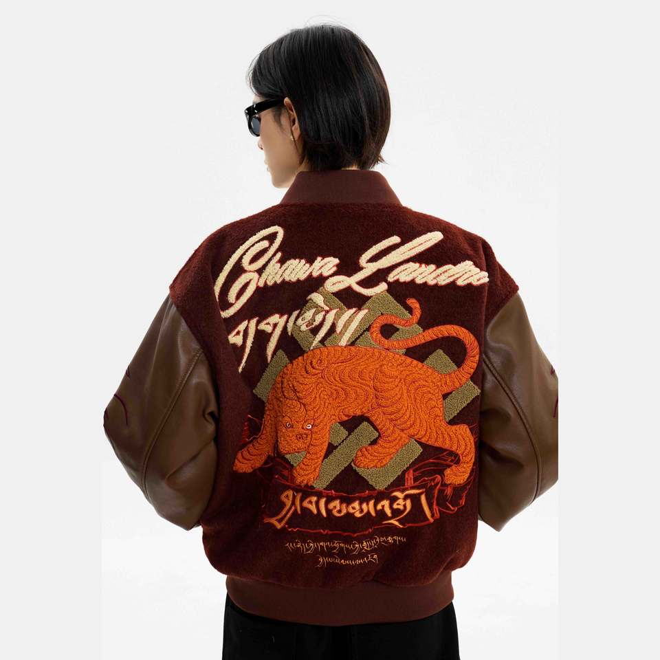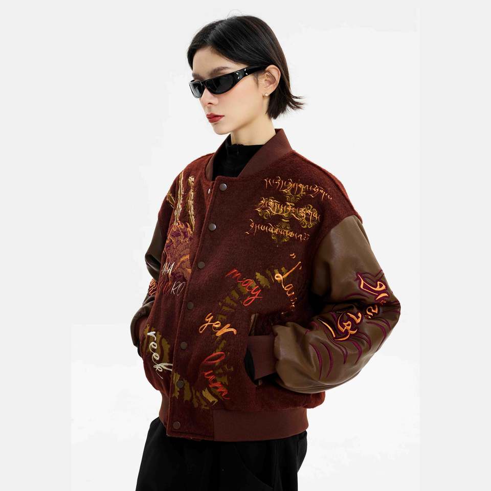 Custom Wool Wholesale Baseball Street Chenille Embroidery Patches Logo Vintage Baseball Letterman Leather Sleeve Varsity Jacket