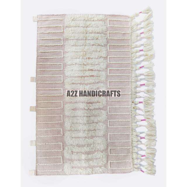 Tapis de salon solide tissé en laine sur mesure Tapis bohème fait à la main Tapis de sol 5x7 abstrait brodé