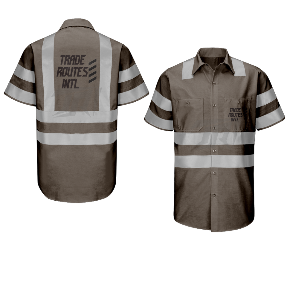 Ensemble de vêtements de travail en polyester imperméable durable personnalisé Chemise boutonnée à bavette Col ras du cou-Vêtements de sécurité réfléchissants pour le terrain
