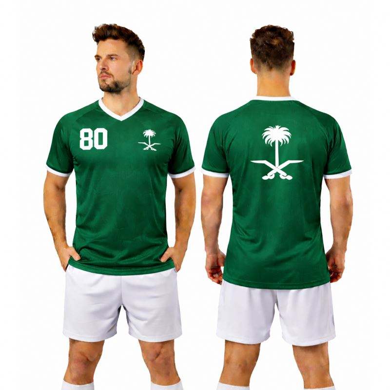 Ensemble Maillot et Short de Football Personnalisé Style Arabie Saoudite Coupe du Monde 2026 pour Hommes – Tenue d'Entraînement de Football Personnalisée Vert et Blanc