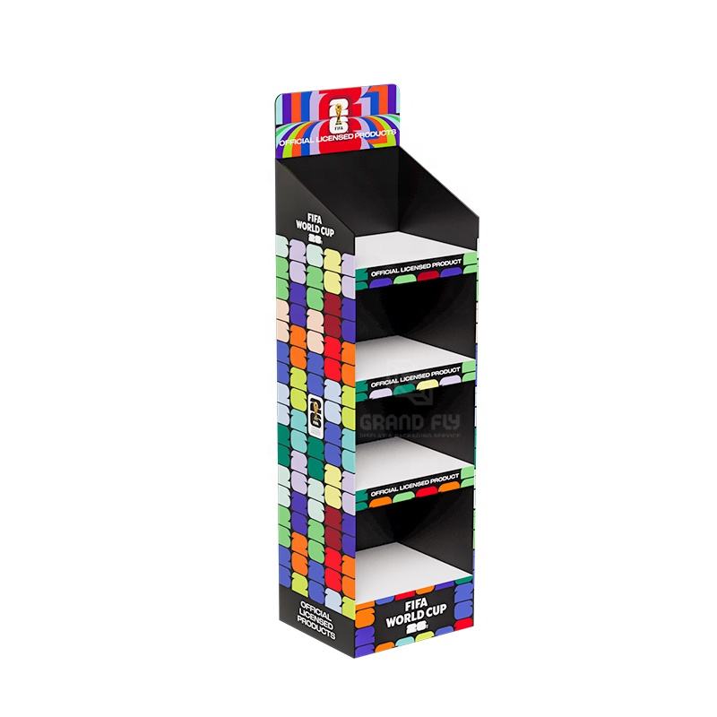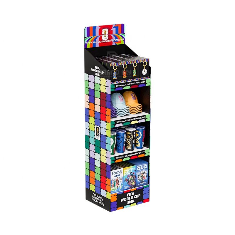 Support d'affichage en carton personnalisé pour la Coupe du monde de football avec niveaux, étagère de sol pour jeux de société, présentoirs en carton ondulé
