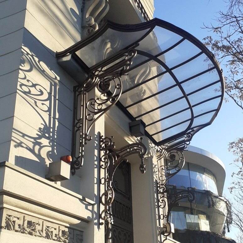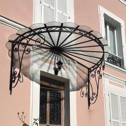 Auvent en fer forgé personnalisé pour la protection des fenêtres et des portes Conception de défilement moderne Finition résistante aux intempéries Fixation facile par support