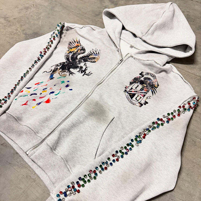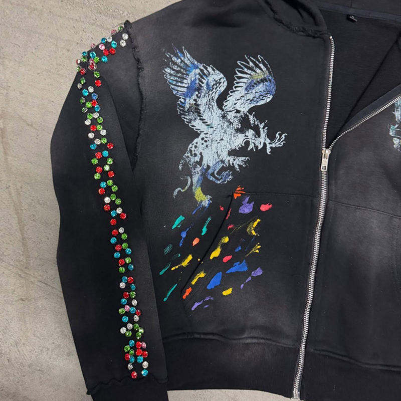 Personnalisé Y2K Strass Pull À Capuche Hommes Acid Wash French Terry 280g 100% Coton Printemps Écologique Loose Fit Hoodie