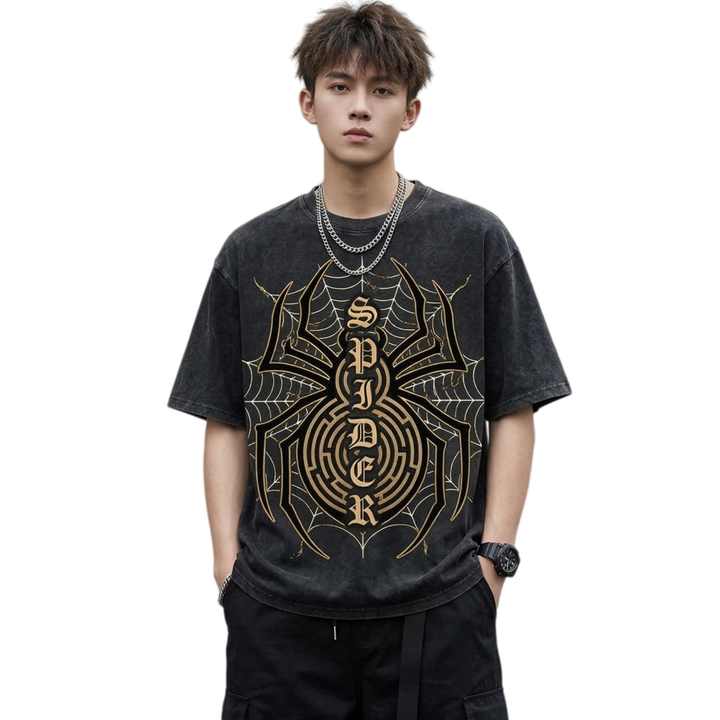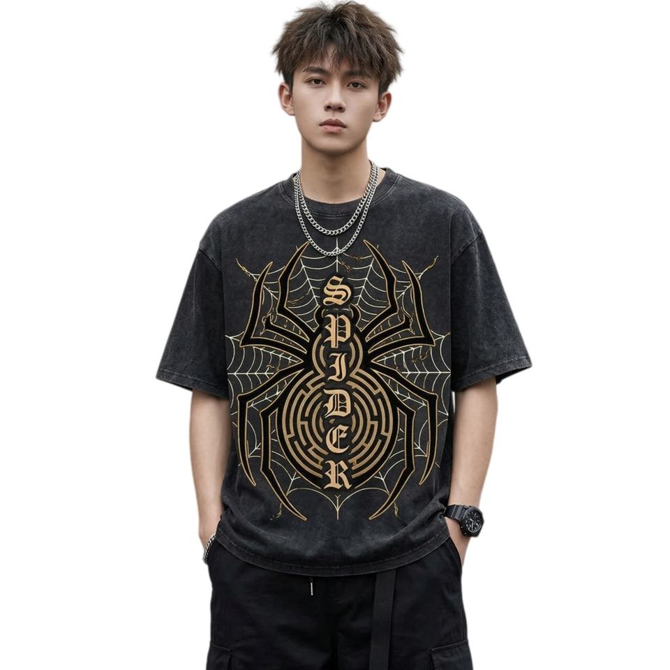 T-shirt oversize délavé style streetwear Y2K personnalisé à bas prix pour homme, imprimé graphique araignée Hip Hop, en coton épais vintage