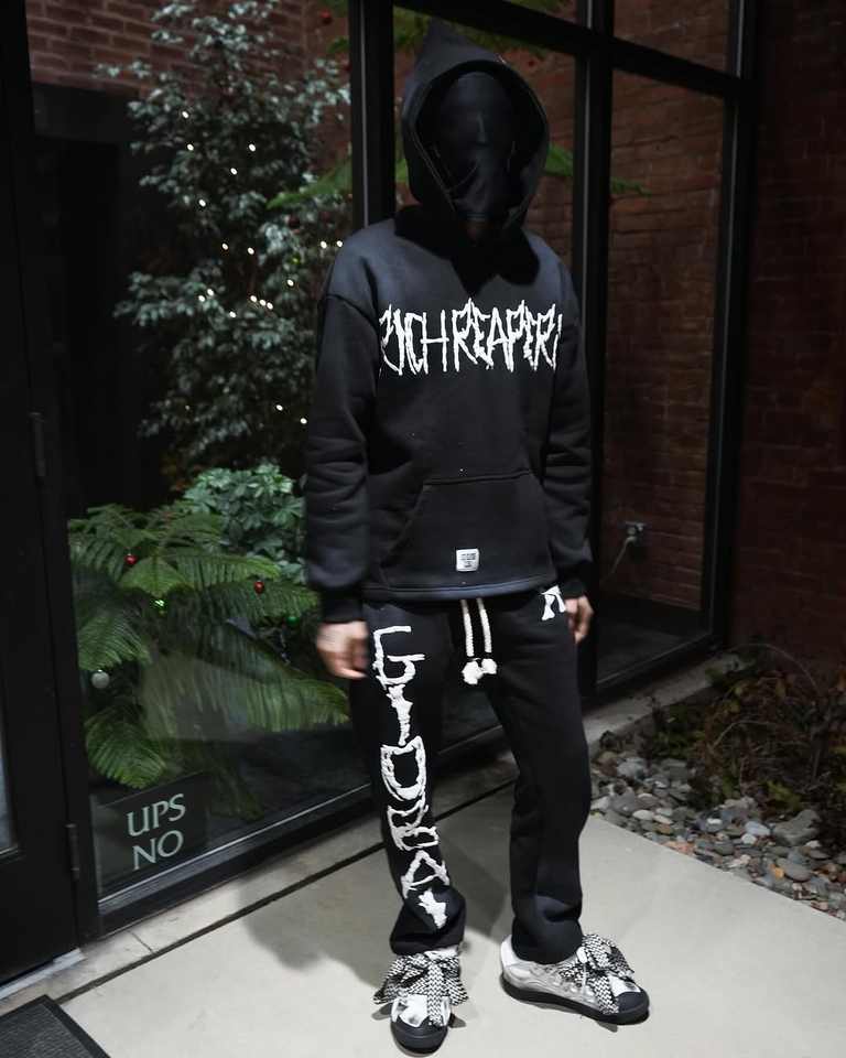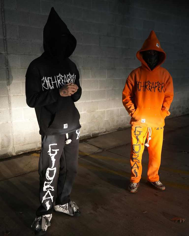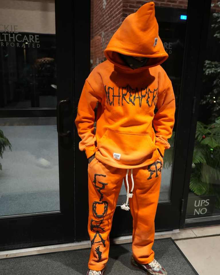 Survêtement imprimé bouffant personnalisé y2k vêtements de rue ourlet court hommes à capuche et pantalon de survêtement ensemble pantalon de survêtement évasé hip hop ensemble 2 pièces
