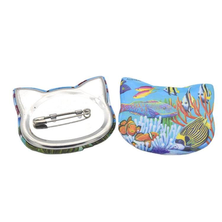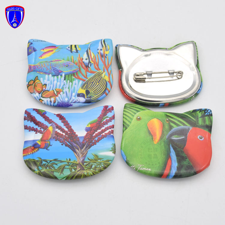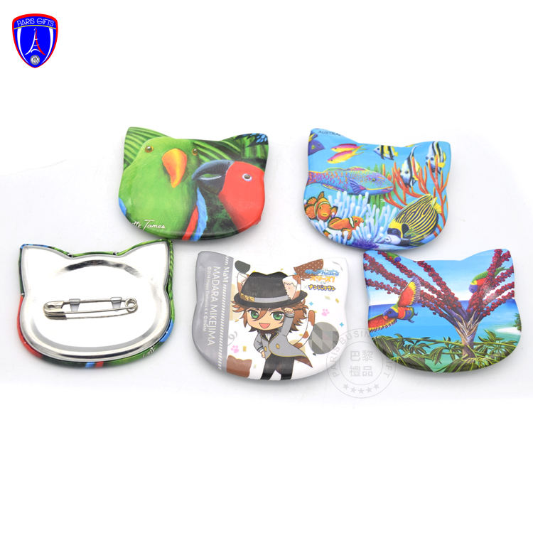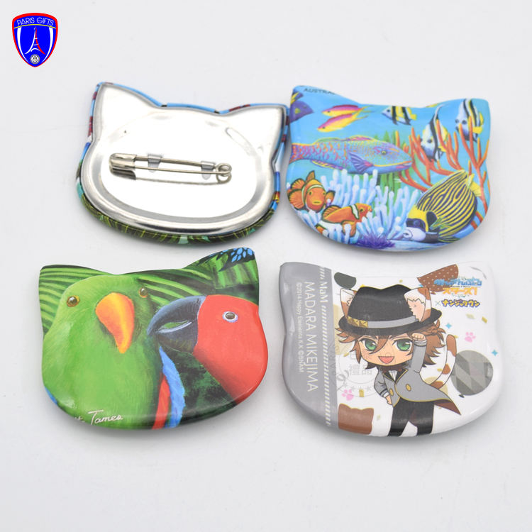 Pas cher en métal dessin animé chat forme bouton badges avec goupille de sécurité cuire