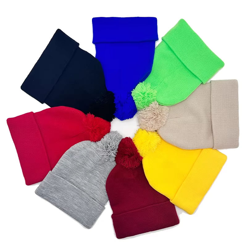 Personnalisez votre propre logo brodé Bonnet à pompon tricoté Bonnet d'hiver chaud de ski vente en gros