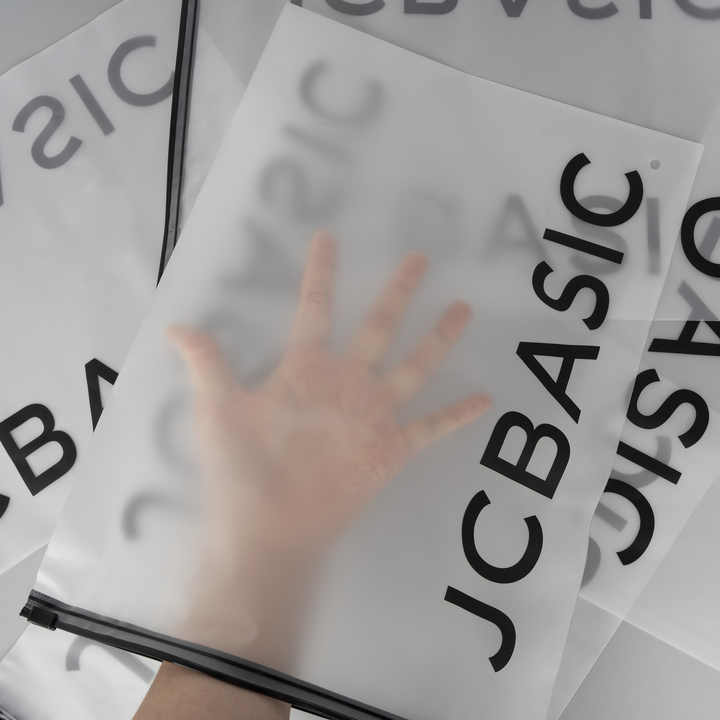 Sacs d'emballage pour vêtements en plastique givré avec fermeture éclair, personnalisables avec votre logo, en polyéthylène recyclé