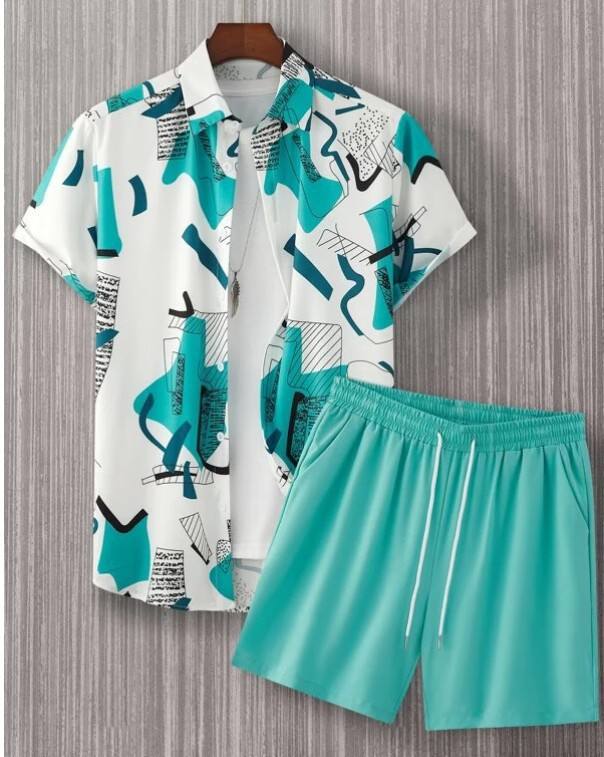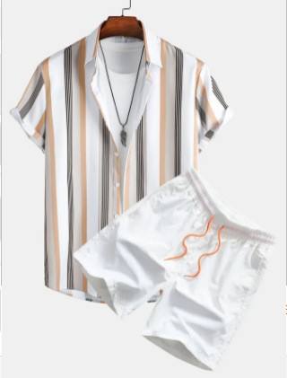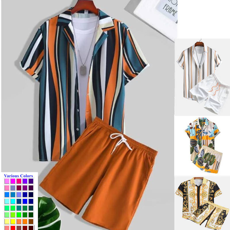 Ensemble chemise et short pour homme à col cubain avec logo personnalisé, rayures verticales, tenue de plage estivale, tenue de vacances, OEM, marque privée