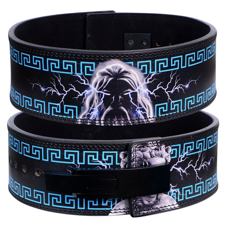 Ceinture de musculation en cuir personnalisée Zeus, impression personnalisée, 10 mm d'épaisseur, nubuck, levier réglable pour la sécurité en fitness