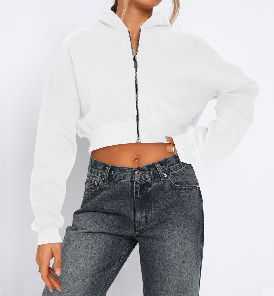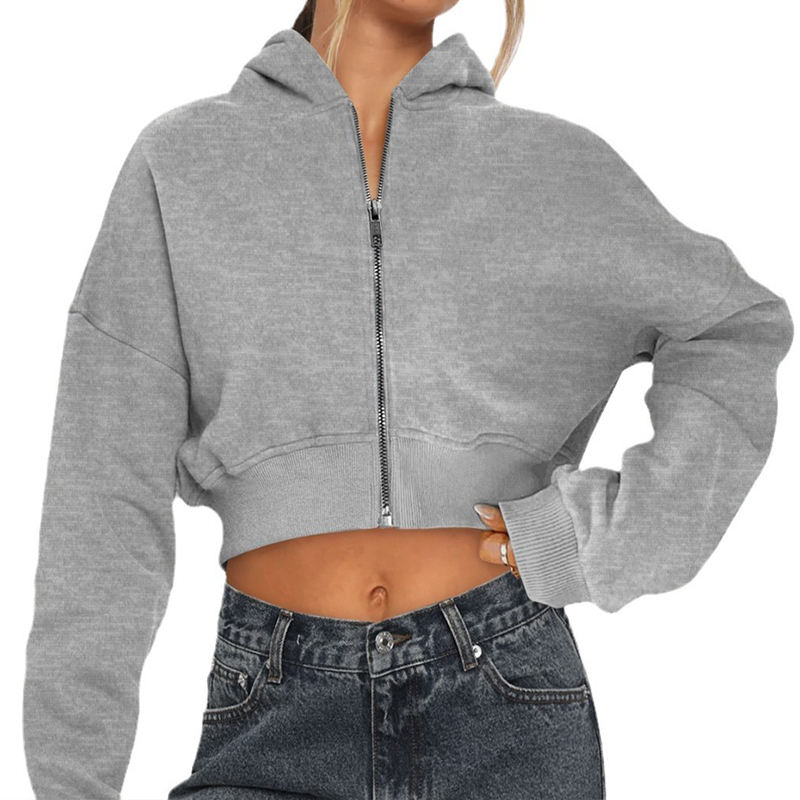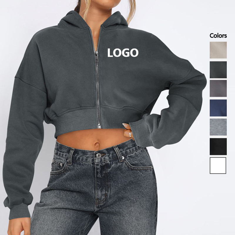 Sweat à capuche zippé personnalisé Y2K pour femmes Streetwear Zipper Sweats à capuche courts de luxe unis de haute qualité