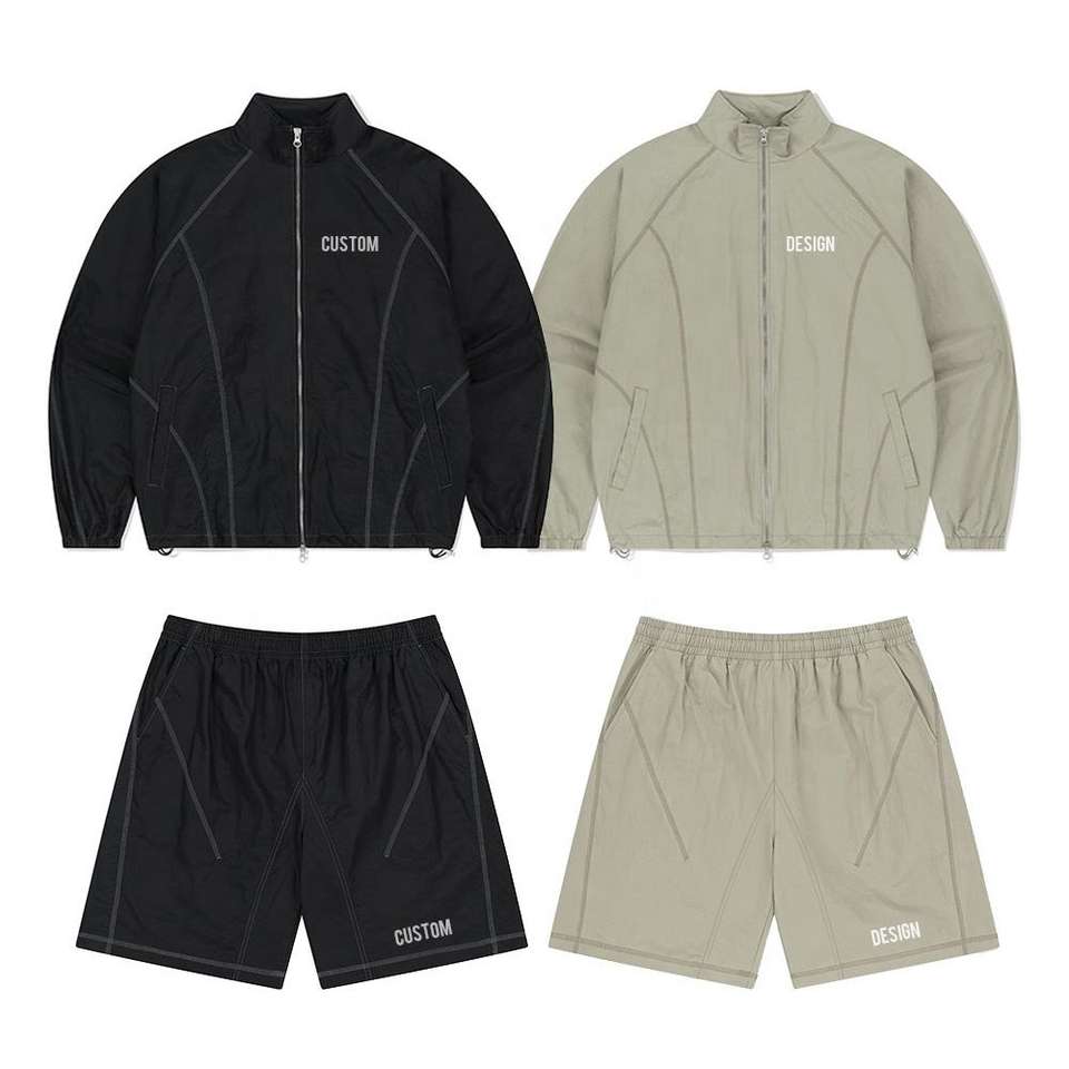 Custom Zip up Lightweight Nylon Tracksuit for Men Blank Loose Fit Summer Windbreaker Shorts Set