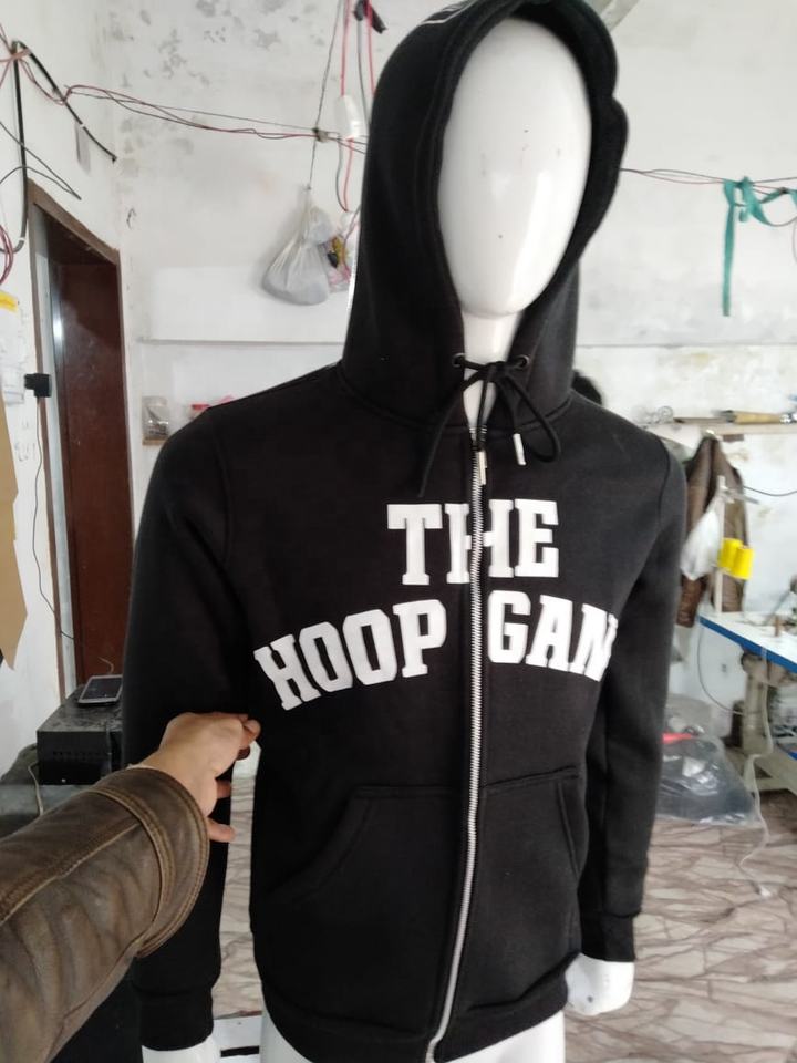 Sweat à capuche zippé personnalisé de couleur vert émeraude avec doublure en satin logo personnalisé et taille personnalisée avec poches profondes à l'ourlet