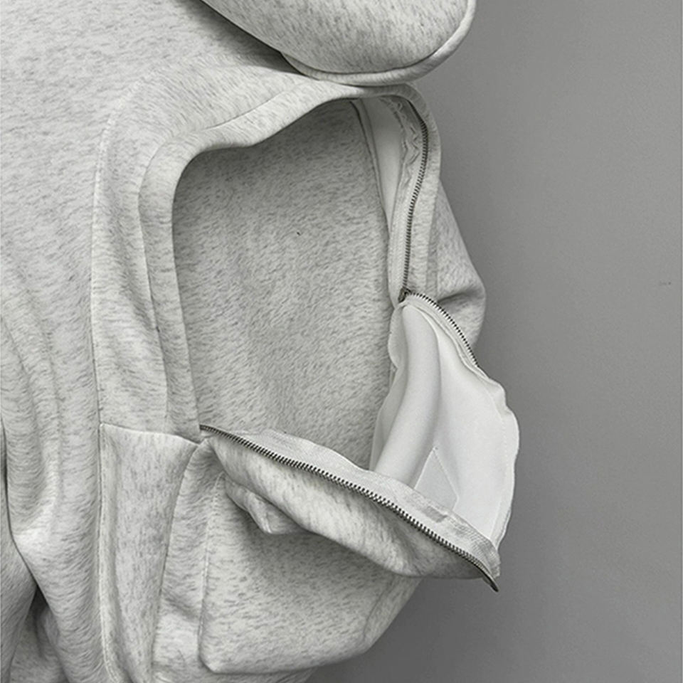Sweat à Capuche Personnalisé Zippé Enfants Sac à Dos Veste 100% Coton Uni Streetwear Femme Ample Lourd Surdimensionné Homme