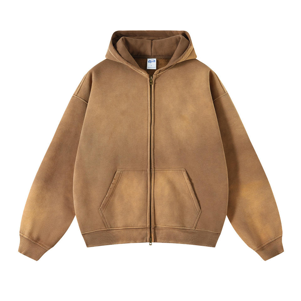 Veste à fermeture éclair personnalisée en molleton de coton, sweat à capuche à fermeture éclair, veste à fermeture éclair élégante, sur mesure, molleton lourd GSM