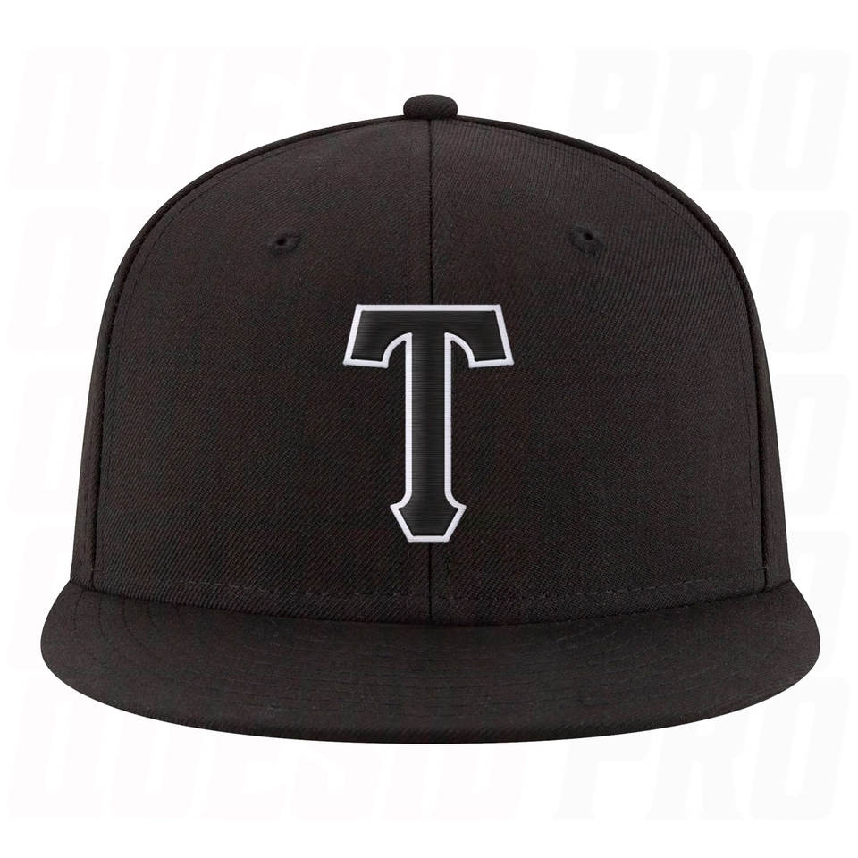 Custom black black white stitched adjustable snapback hat premium streetwear flat brim cap durable embroidery classic fit women