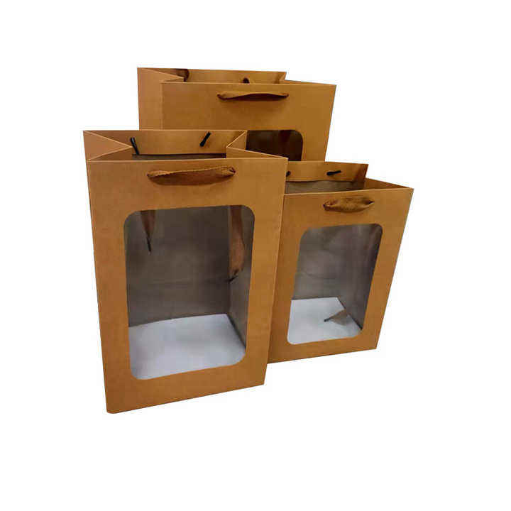 Vente en gros de sacs-cadeaux personnalisés en papier kraft avec poignées, emballage de bouquet de fleurs imprimé avec logo à fond carré, produit chinois bon marché