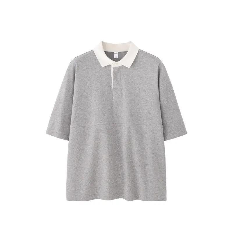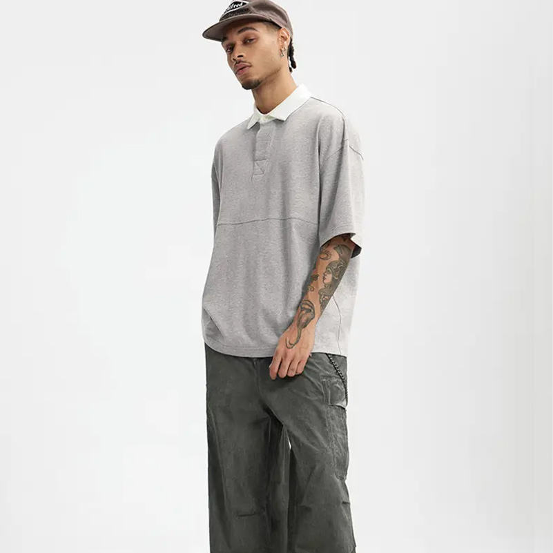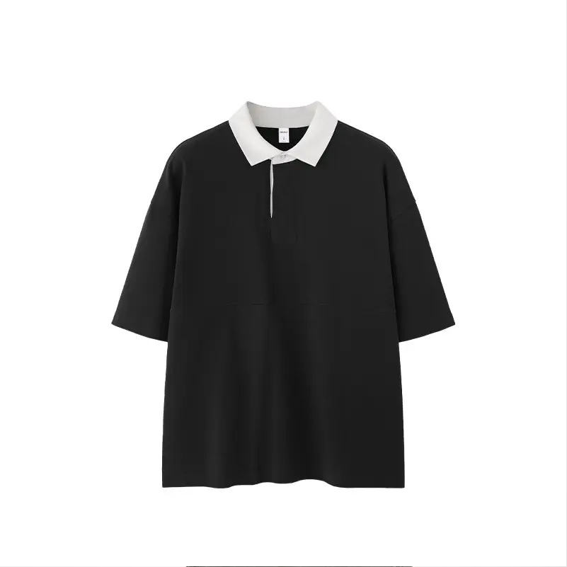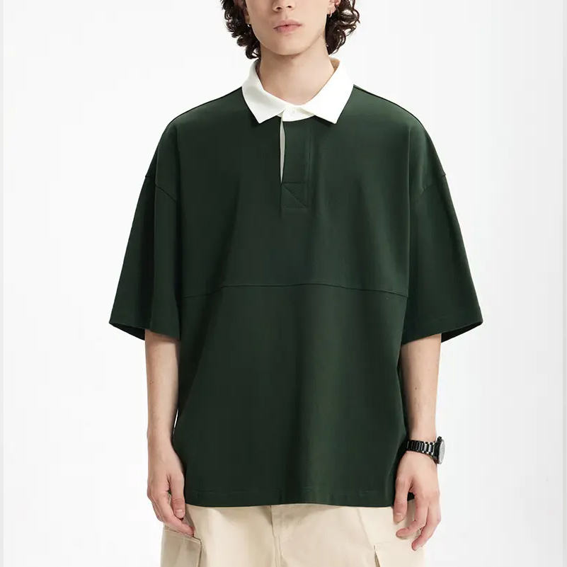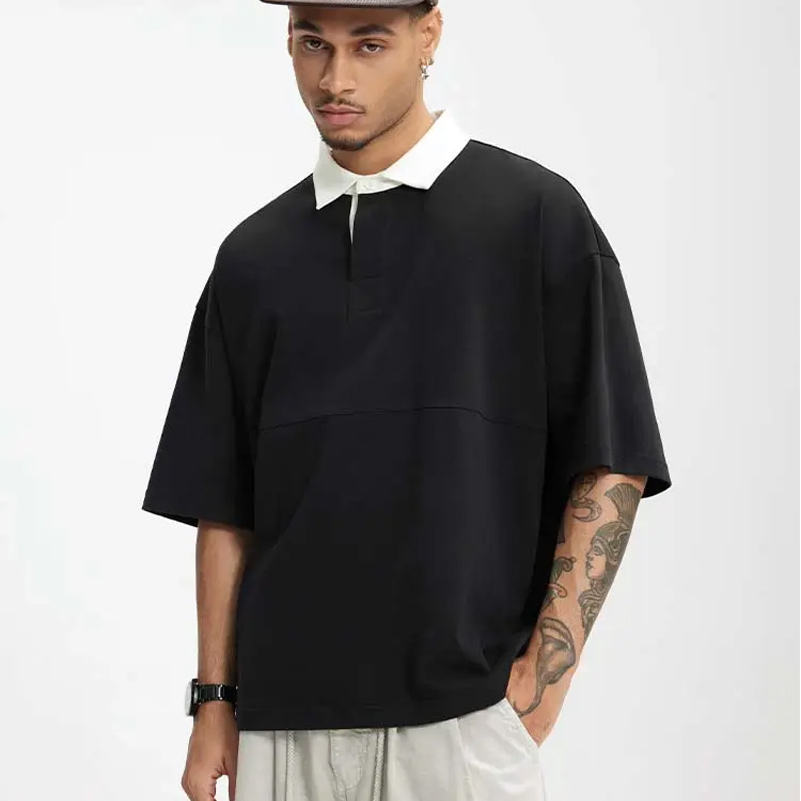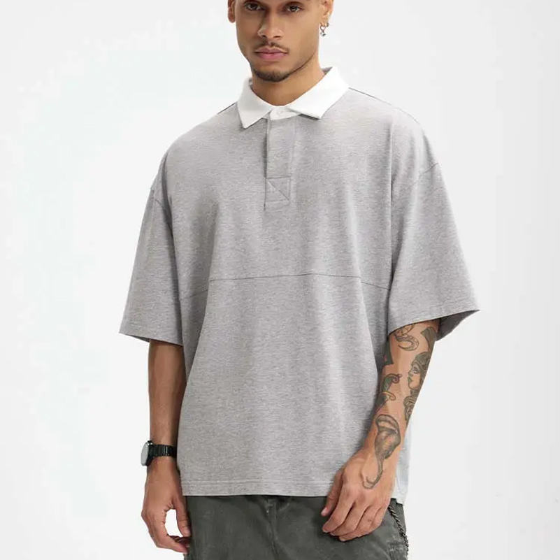 Chemises décontractées pour hommes en maille respirante, grande taille, couleur contrastée personnalisée, avec épaules tombantes, logo brodé et coupe oversize