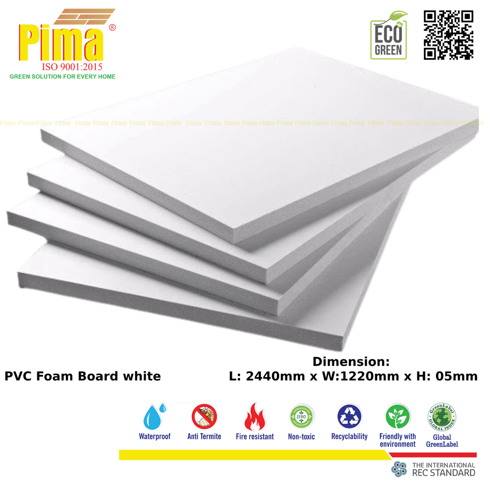 Feuille de panneau de mousse PVC WPC coupée sur mesure 0.6G/cm3 Densité 5mm Épaisseur Panneaux polyvinyles de couleur blanche pour la publicité de revêtement