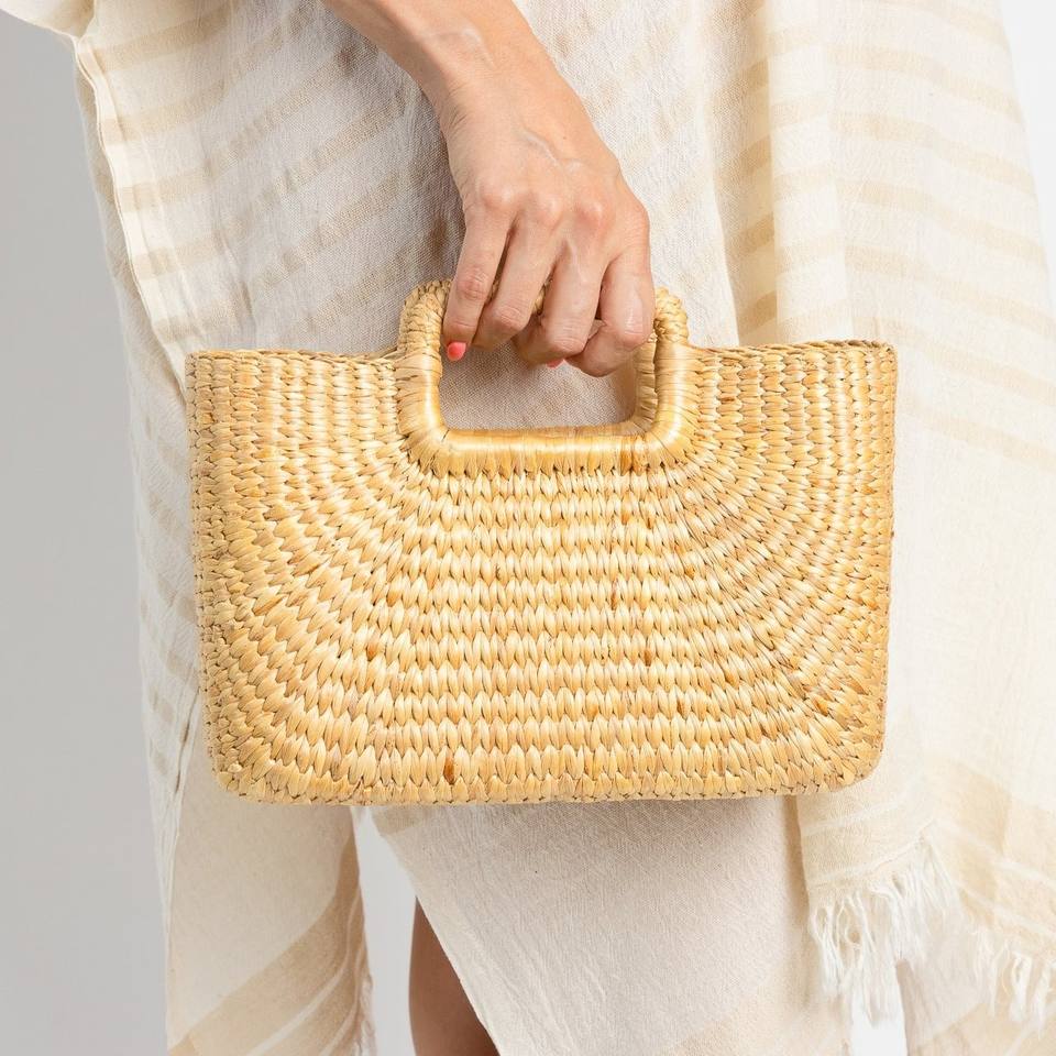 Custom design clutch handbag wholesale cost sustainable bag handbags water hyacinth hand bags