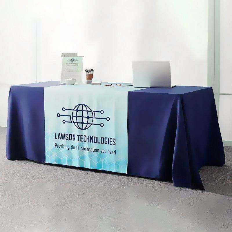 Housses de table d'exposition et nappes publicitaires sur mesure avec différents logos