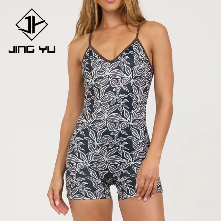 Combinaison à col en V à imprimé hawaïen élégante et personnalisée, combinaison en nylon recyclé luxueuse et confortable