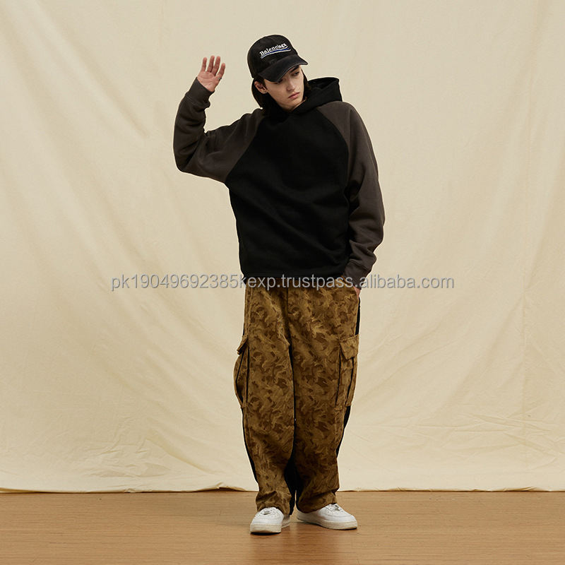 Custom embroidered heavyweight streetwear hoodie plain Color block cotton no string fleece designer cropped oversize men hood