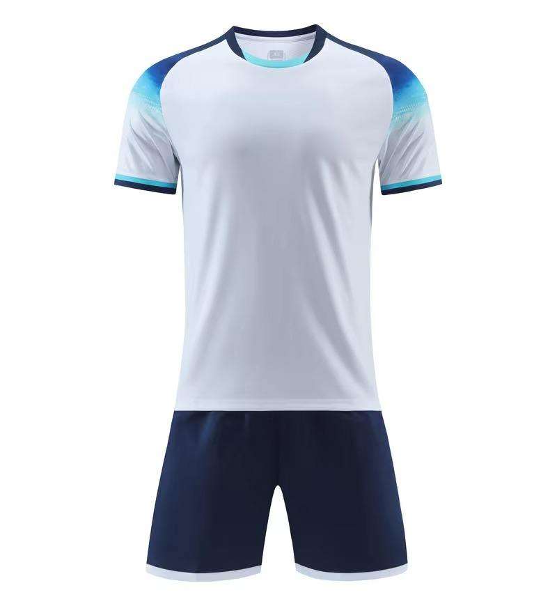 Custom Unisex Football Kit Breathable Quick Dry Anti-Bacterial White Navy Jersey Shorts Set Gradient Sleeves Training Uniform
